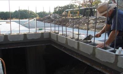 A következő lépés acélgerendák telepítése volt a gödörbe. Elhelyezve az acélgerendákat, majd következett a támasztószerkezet, hogy időtálló legyen a szerkezet. A gödör tetejét hullámpalával fedte, és a bejáratnál betonacél rudakat hegesztett az acélgerendákhoz. Erre betontéglákat tett, majd feltöltötte őket, a szoros lezárás érdekében.